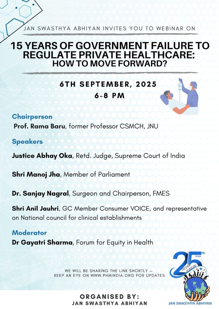 The Jan Swasthya Abhiyan (JSA) was formed in 2001, with the coming together of 18 national networks that had organised activities across the country in 2000, in the lead up to the First Global Peoples Health Assembly, in Dhaka, in December 2000. The JSA forms the Indian regional circle of the global People’s Health Movement (PHM). At present it is the major national platform that co-ordinates activities and actions on health and health care across the country.