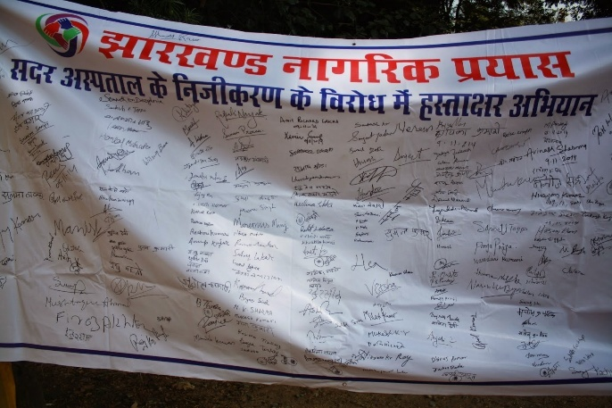 Following this, on 3 August 2014, a signature campaign was launched at Firayalal Chowk, one of Ranchi’s busiest squares. This was a visible, public campaign which invited thousands of ordinary people to sign their names against the privatisation move. The campaign gathered momentum, spreading awareness across the city that something important was being decided about their hospital without their consent.