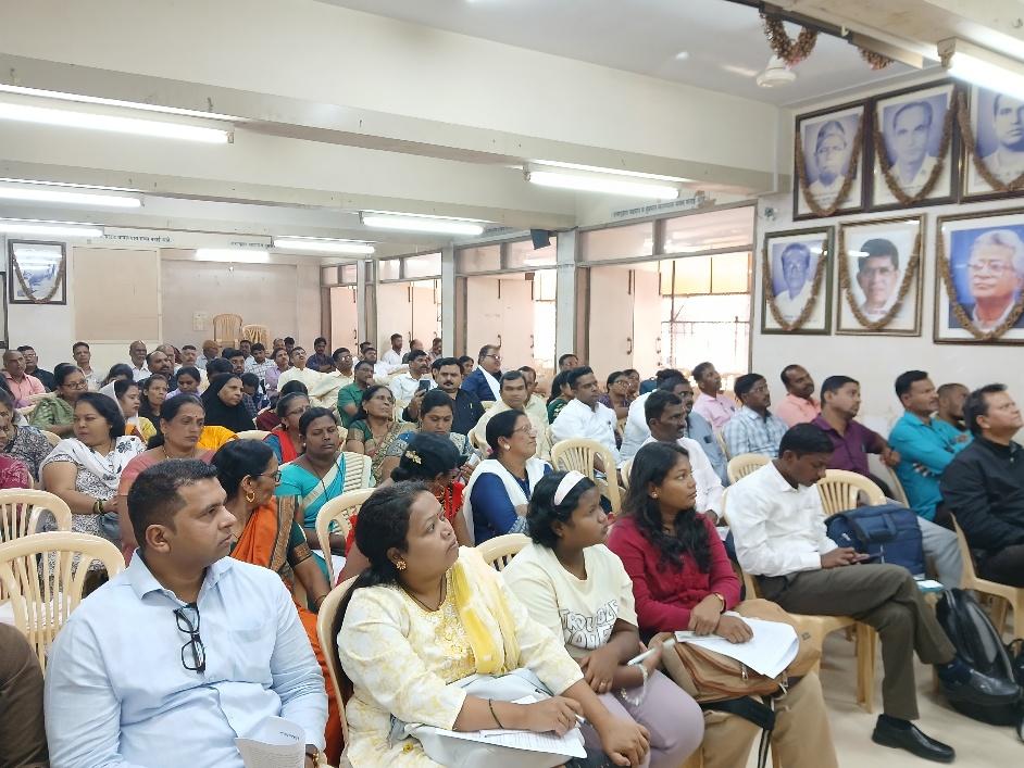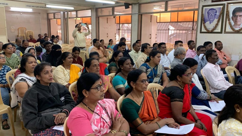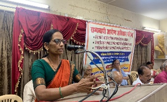 Following this, the discussion session featured interventions by senior trade union leaders Ashok Jadhav, Uday Bhatt, Shankar Pujari, Vaman Kaviskar, Pradeep Narkar, Anandi Avghade and others, along with health activists associated with Jan Arogya Abhiyan like Girish Bhave, Shubham Kothari, Ravi Desai among others. Women’s rights activists like Armaity Irani (AIDWA) spoke, and senior health activists like Dr Kamaxi Bhate and Avinash Kadam actively contributed to the convention. Union leaders representing ASHAs, 108 ambulance drivers, ambulance doctors, municipal nurses and hospital staff, and contractual health workers shared their striking first-hand experiences of staff shortages, excessive workloads, inadequate wages, collapsing infrastructure and damaging impacts of contractualisation. The session was moderated by Dr Dnyaneshwar Mote, Trishila Kamble, and Deepak Jadhav.