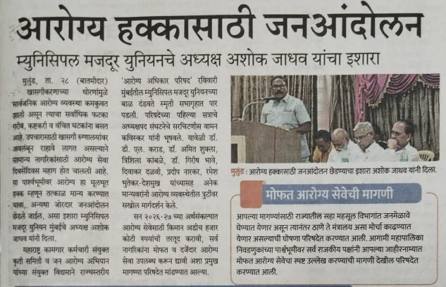 - In the context of the upcoming municipal corporation elections, the convention took a decision to dialogue with candidates and political parties, efforts will be made to compel them to take a clear stand in favour of major improvements in public healthcare while strongly opposing privatisation.